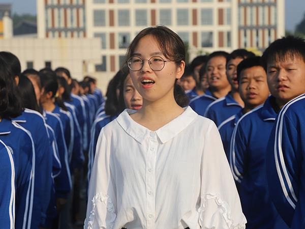 學(xué)生代表姚炅心帶領(lǐng)全體師生共同唱響《我和我的祖國(guó)》,“我和我的祖國(guó),一刻也不能分割,無論我走到哪里,都流出一首贊歌……”。